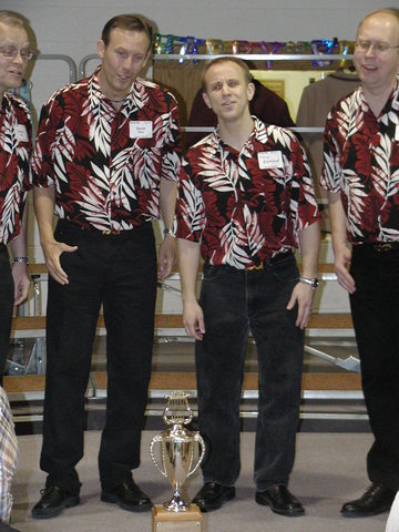 Nouveau shows off their District Champ trophy.